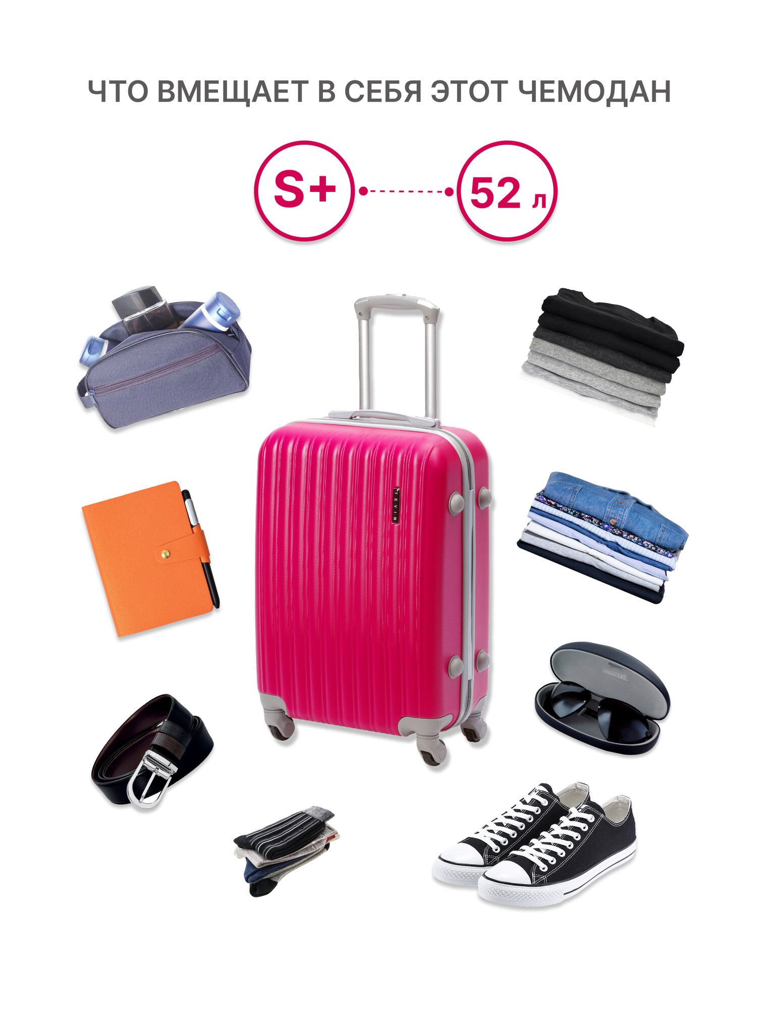 Чемодан на колесах дорожный средний багаж для путешествий s+ TEVIN размер С+ 60 см 52 л легкий 2.6 кг прочный abs (абс) пластик Розовый яркий информация: