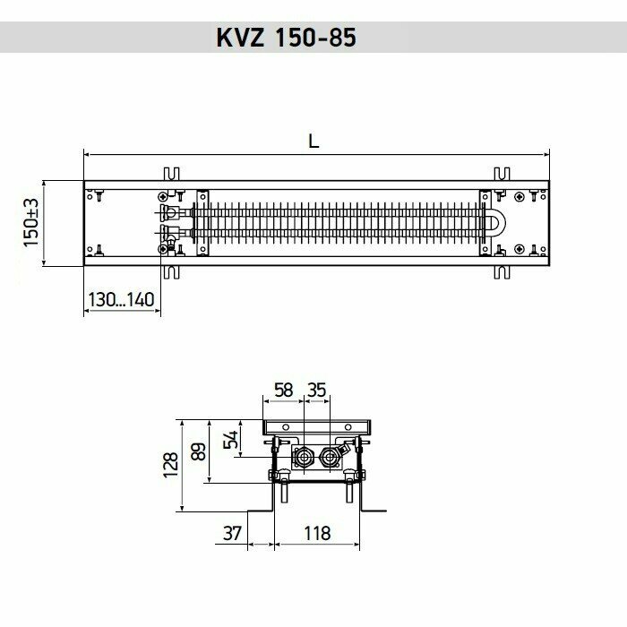 Встраиваемый внутрипольный конвектор TECHNO Usual KVZ 250-85-2600 RH04001315