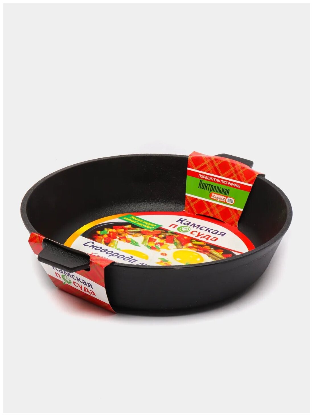 Отзывы на Сковорода чугунная Камская посуда 260х60 с алюминиевой крышкой и 2 ушками