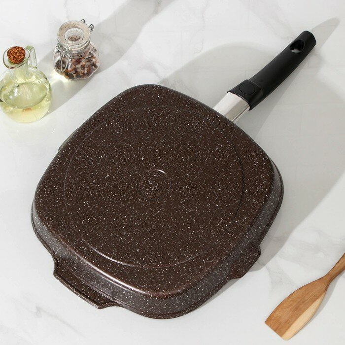 Сковорода-гриль квадратная, 28x28 см, съёмная ручка, стеклянная крышка, антипригарное покрытие, цвет кофейный мрамор 4 690 ₽