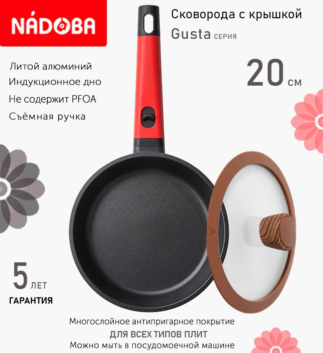 Сковорода с крышкой NADOBA 20см, серия "Gusta" (арт. 729219/751315) информация: