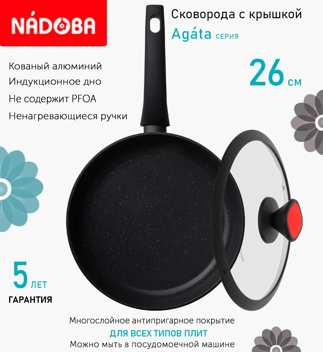 Сковорода с крышкой NADOBA 26см, серия "Agata" (арт. 728017/751712) информация: