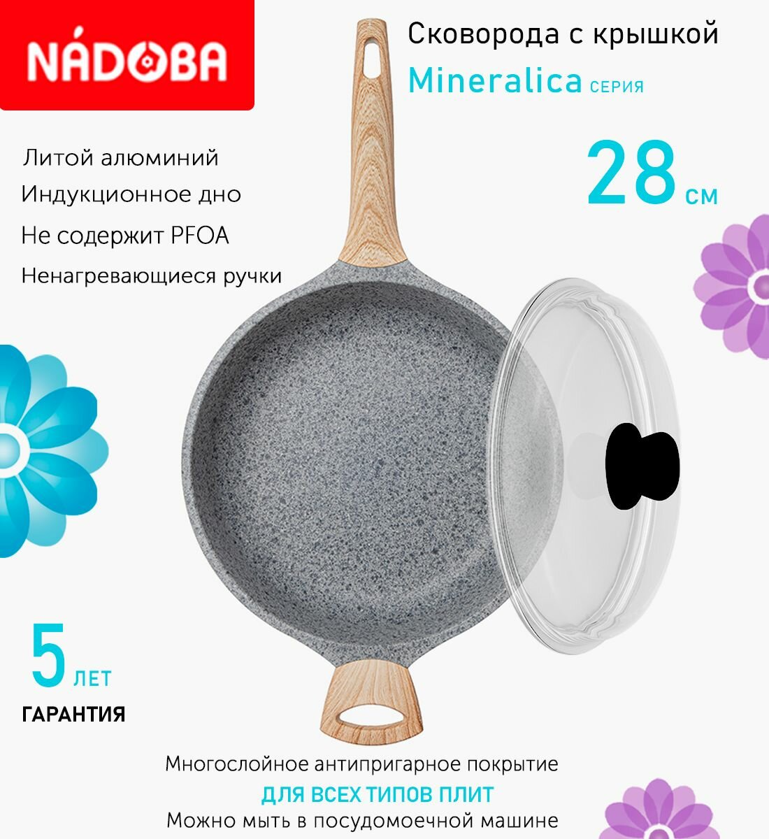 Отзывы на Сковорода глубокая с крышкой NADOBA 28см, серия "Mineralica" (арт. 728426/751111)