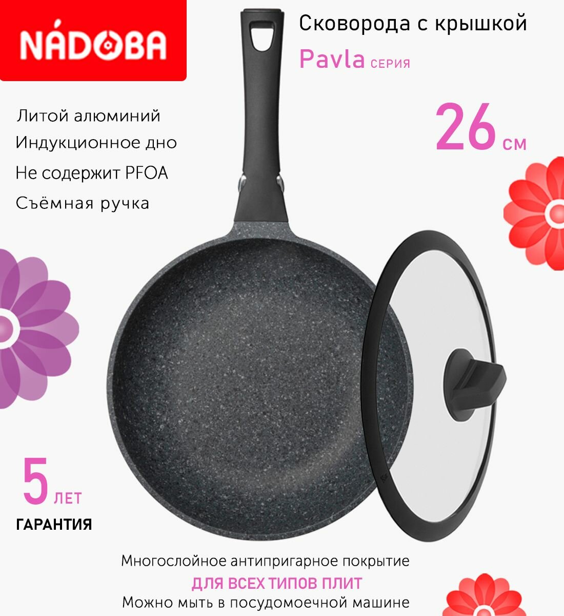 Сковорода с крышкой NADOBA 26см, серия "Pavla" (арт. 729017/751612) информация: