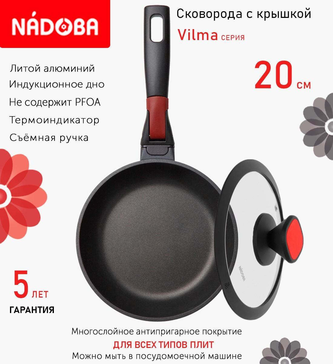 Отзывы на Сковорода с крышкой NADOBA 20см, серия "Vilma" (арт. 728219/751715)