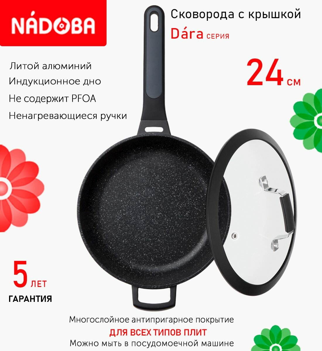 Отзывы на Сковорода глубокая с крышкой NADOBA 24см, серия "Dara" (арт. 729128/751413)