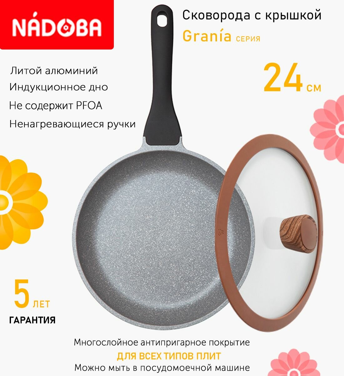 Сковорода с крышкой NADOBA 24см, серия "Grania" (арт. 728118/751313) информация: