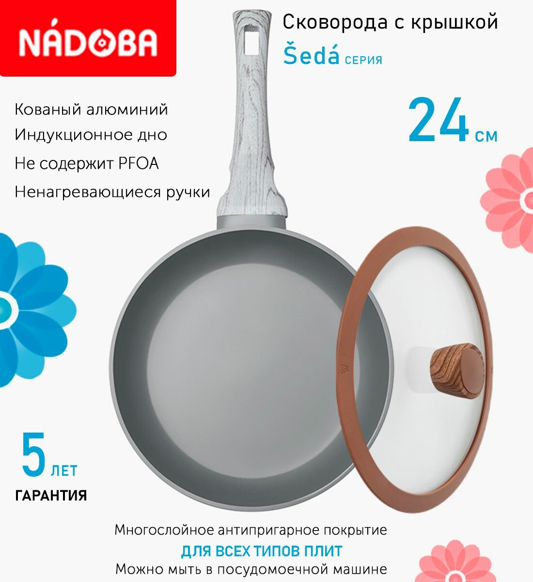 Сковорода с крышкой NADOBA 24см, серия "Seda" (арт. 729418/751313) информация: