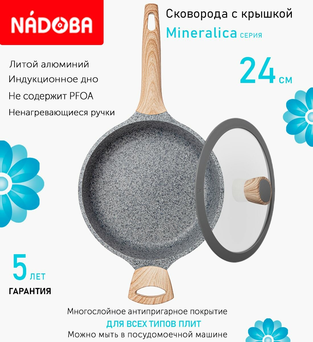 Сковорода с крышкой NADOBA 24см, серия "Mineralica" (арт. 728428/751213) информация:
