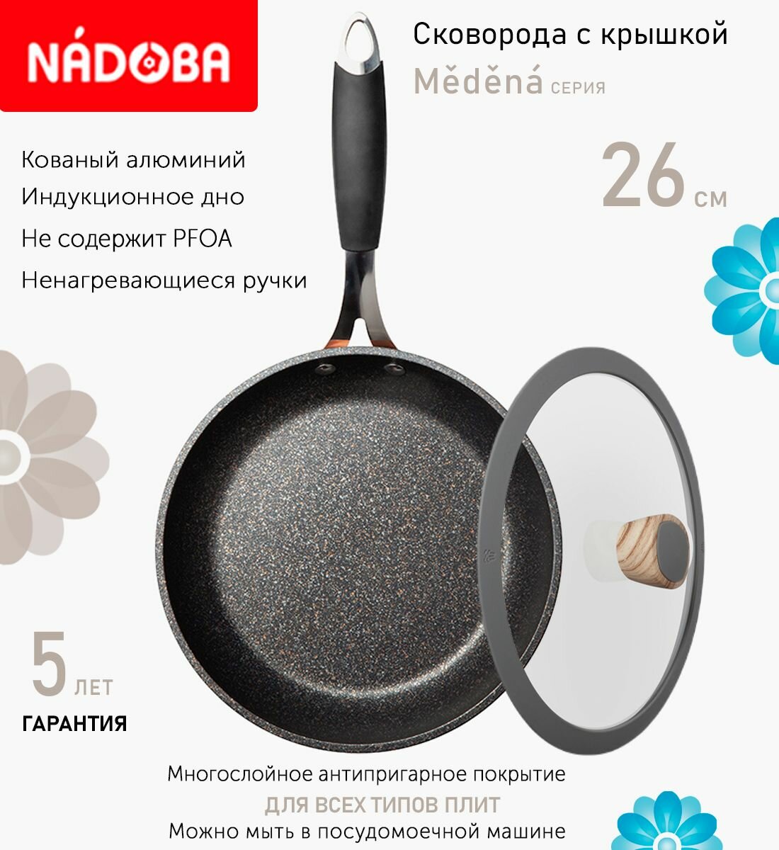 Сковорода с крышкой NADOBA 26см, серия "Medena" (арт. 728717/751212) информация: