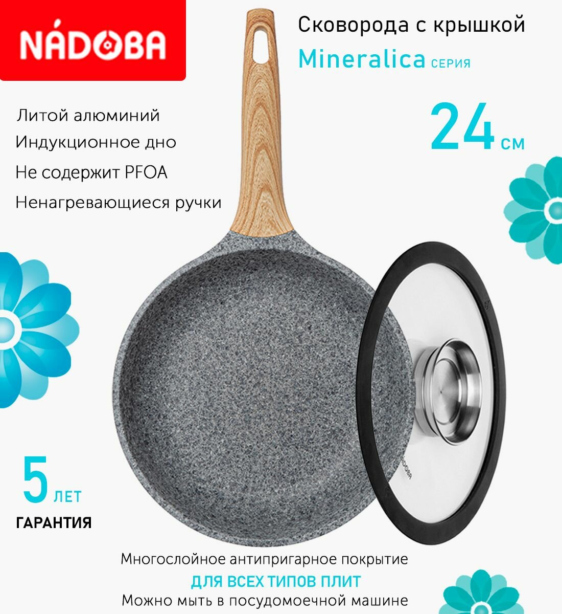 Отзывы на Сковорода с крышкой NADOBA 24см, серия "Mineralica" (арт. 728418/751513)