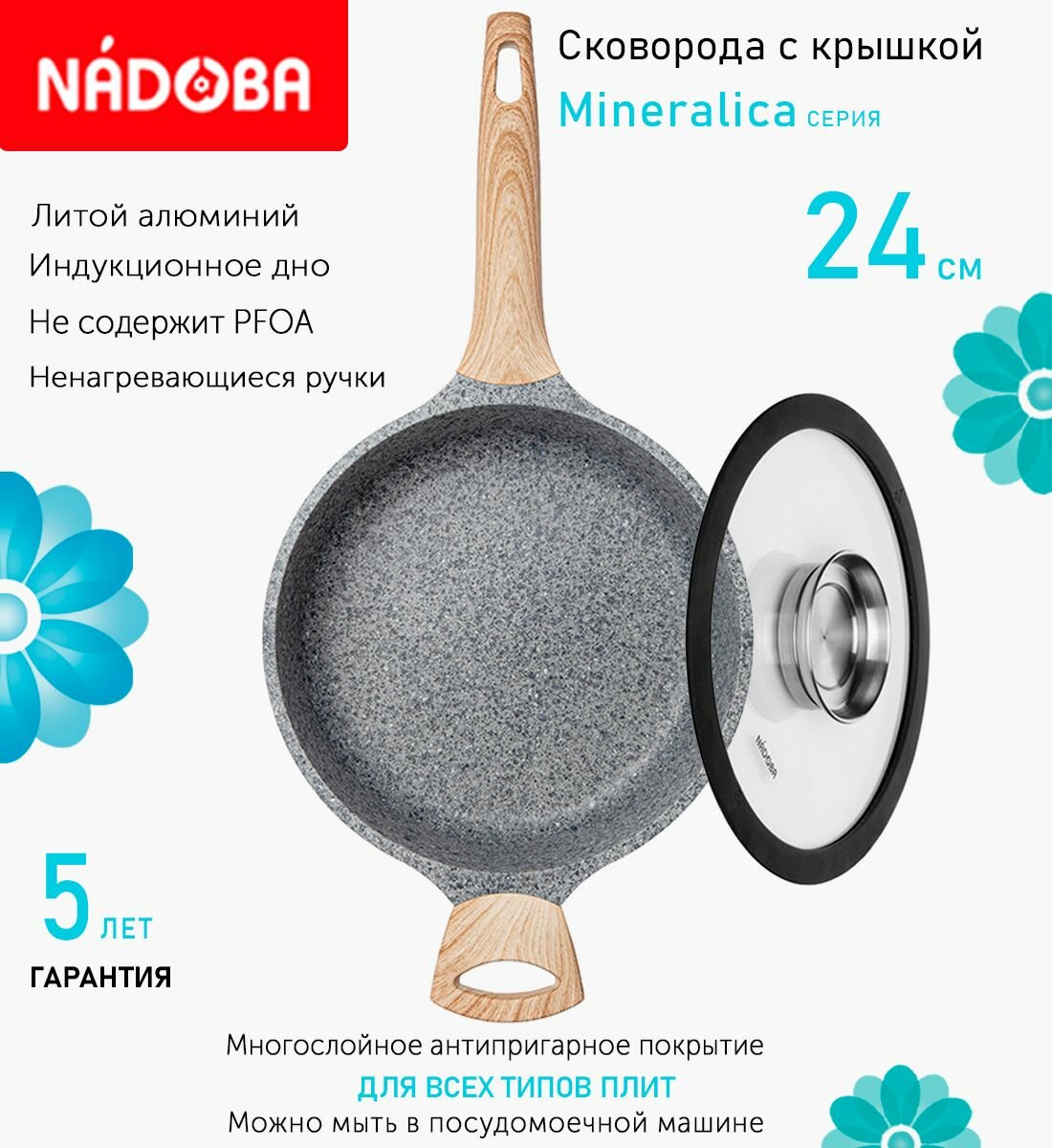 Отзывы на Сковорода с крышкой NADOBA 24см, серия "Mineralica" (арт. 728428/751513)