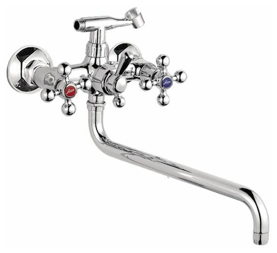 Смеситель на раковину настенный Эверест B46-350 с круглым поворотным изливом, кран-буксы 1/2", хром