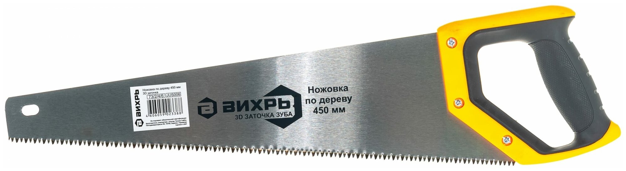 Ножовка 450 мм 3D заточка 2 комп.рукоятка Вихрь информация: