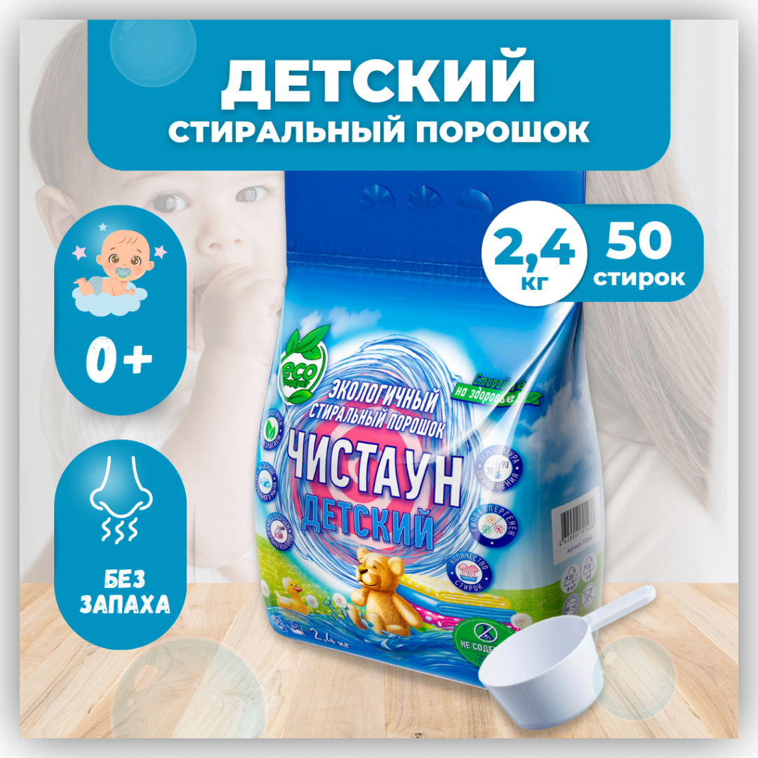 Стиральный порошок Чистаун Детский 2,4 кг без фосфатов и запаха концентрат информация:
