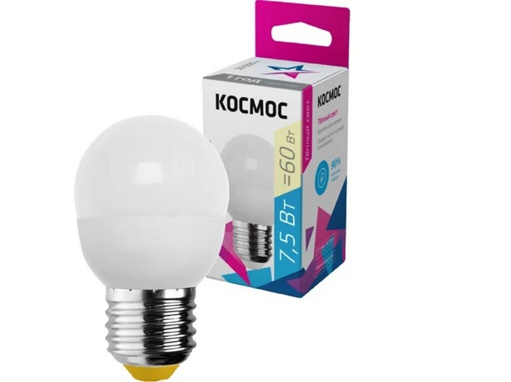 10 цен на Лампа светодиодная GL45 7.5Вт 220В E27 3000К Космос LkecLED7.5wGL45E2730