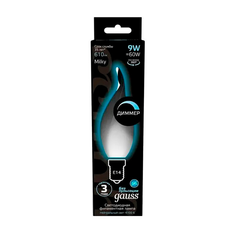 Отзывы на Светодиодная лампа Gauss Filament Свеча на ветру 9W 610lm 4100К Е14 milky LED 1/10/50