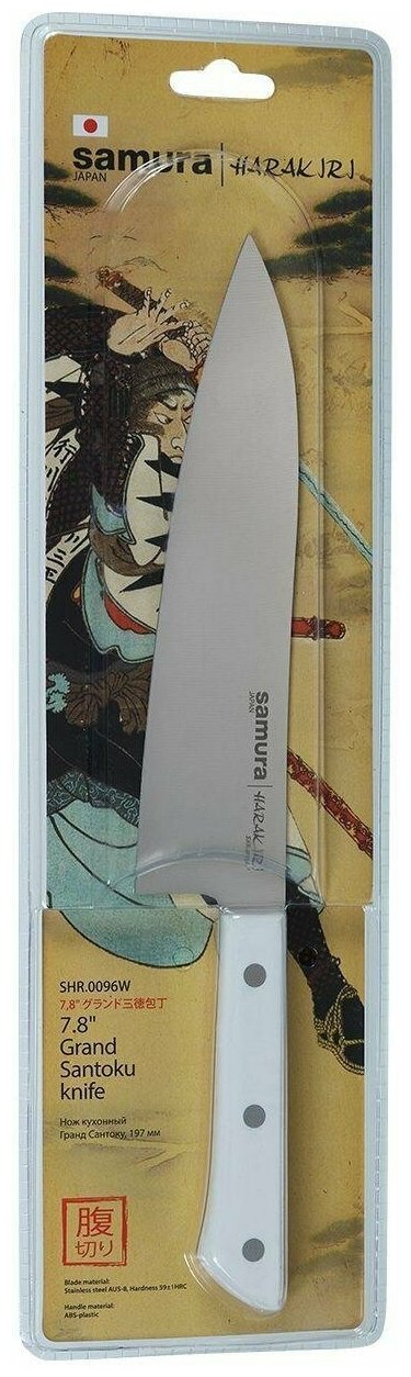 Нож Сантоку для нарезки мяса, рыбы, овощей и фруктов / японский кухонный нож / поварской Шеф нож для кухни Samura Harakiri 197мм SHR-0096W информация: