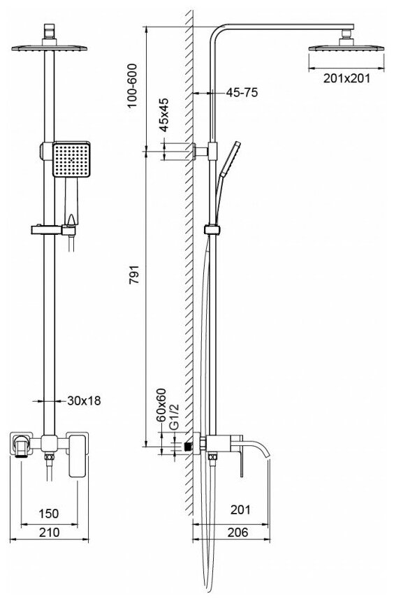 Душевая система AM.PM Sunny, со смесителем, верхний душ, ручной душ, хром