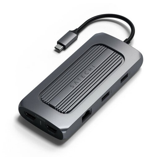 USB-хаб Satechi Type-C Multiport MX Adapter (2xUSB 3.0, 2xUSB Type-C, 2xHDMI, RJ-45, SD, micro-SD, Mini jack), Серый космос Док-станция ST-UCMXAM