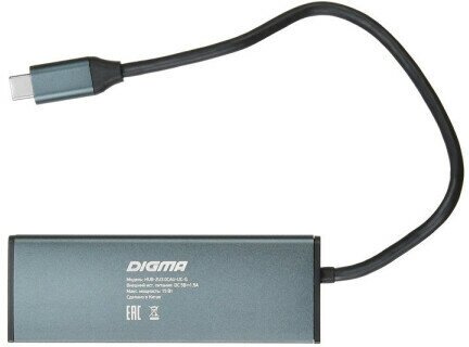 Разветвитель USB-C Digma HUB-3U3.0С-UC-G 4 порта, серый