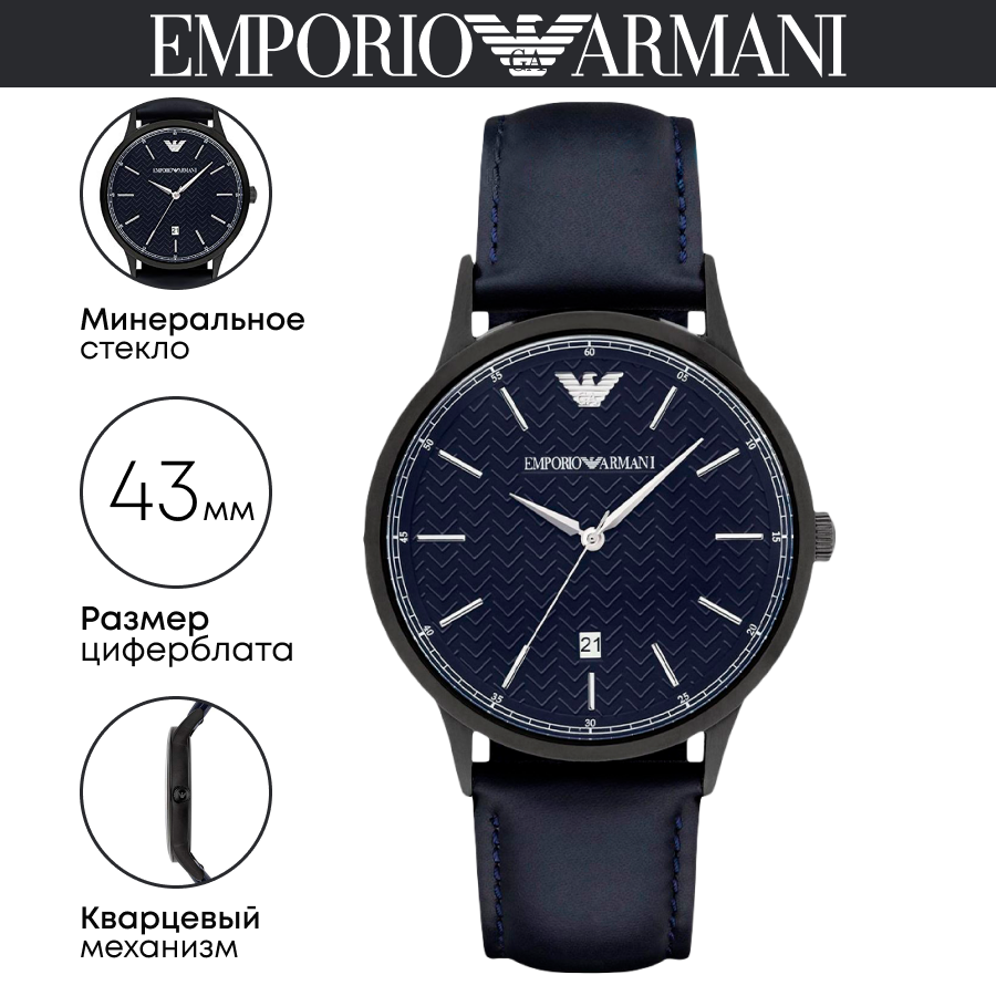 Часы наручные женские Emporio Armani AR11598 кварцевые на кожаном браслете черного цвета с минеральным стеклом водонепроницаемостью WR50 (5 атм)