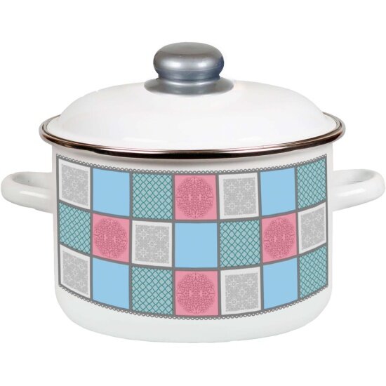 Кастрюля эмалированная 1,5 л с ободком белая с рисунком Фруктовая фантазия