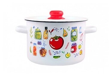 Кастрюля эмалированная 1,5 л с ободком белая с рисунком Фруктовая фантазия
