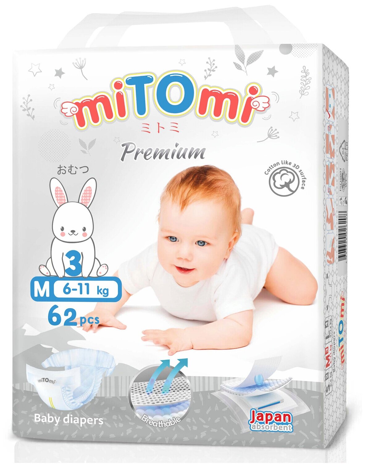 MiTOmi подгузники Premium 3/M (6-11 кг) 62 шт. информация: