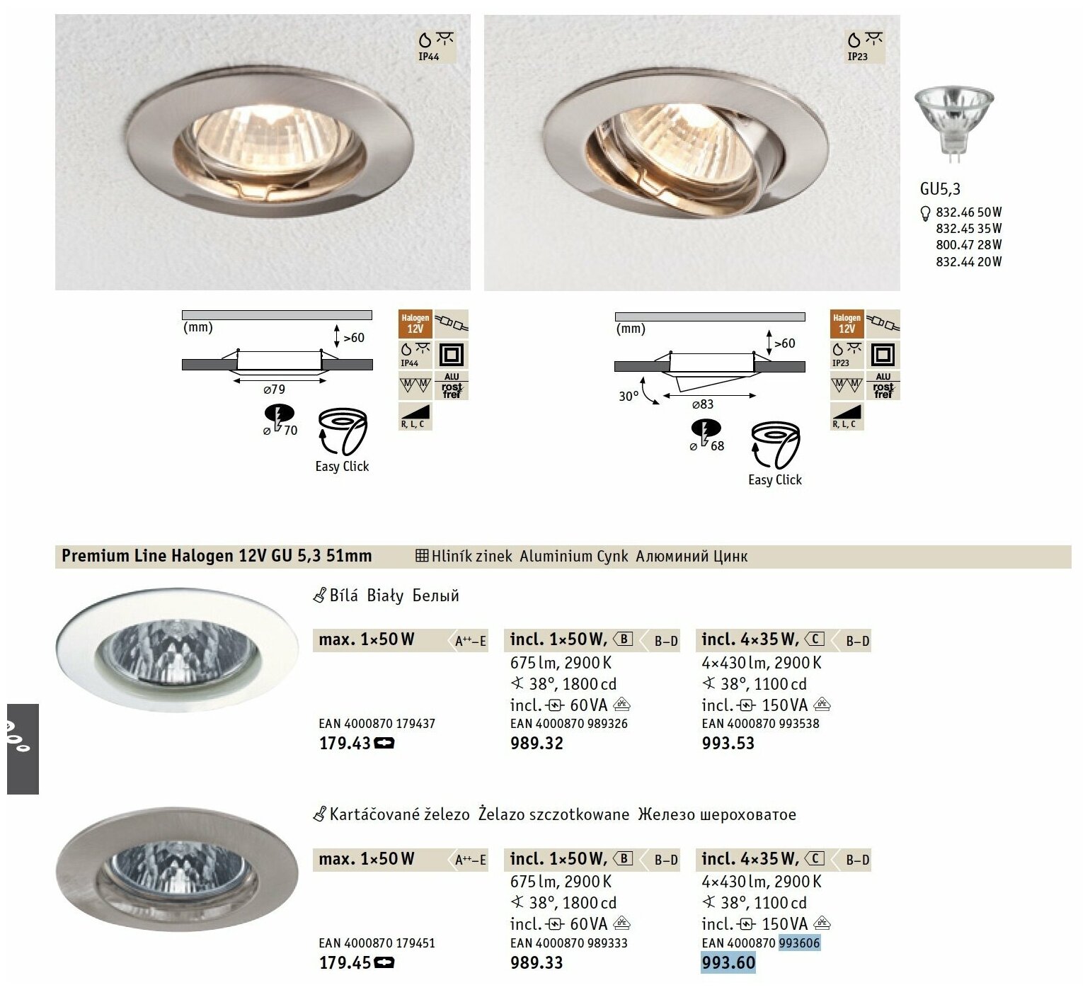 Светильник встраиваемый Paulmann 35Вт 430Лм 2900К IP44 GU5.3 230/12В Железо Дим Набор 4шт 99360 информация: