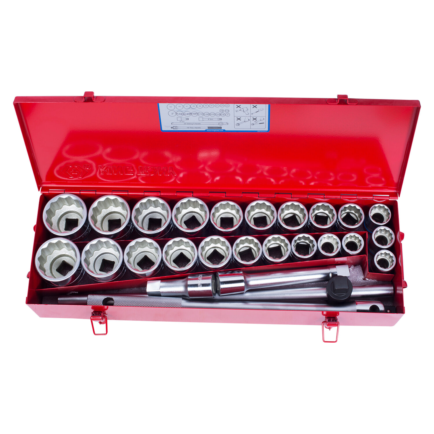 10 цен на Набор торцевых головок с принадлежностями 3/4", двенадцатигранные, 22-50 мм, 7/8"-2", 26 предметов KING TONY 6226CR