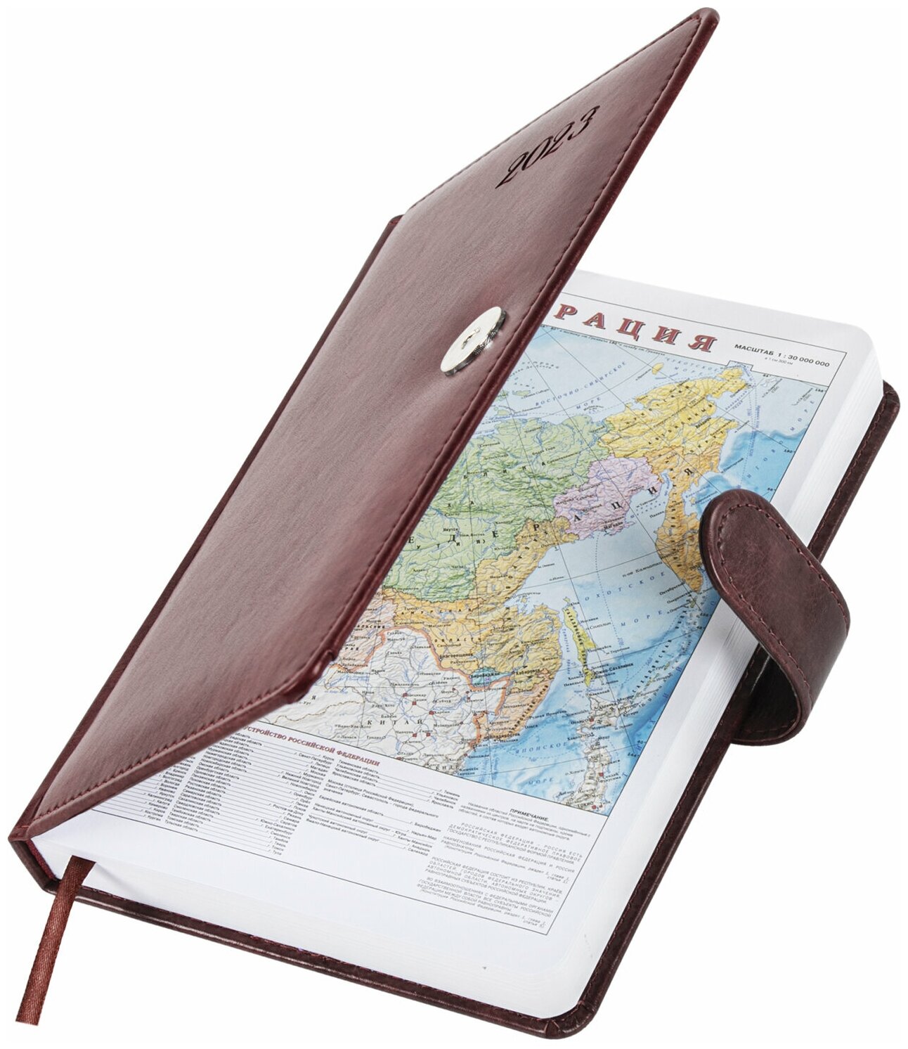 Ежедневник датированный 2023 А5 138x213 мм BRAUBERG "Legend", под кожу, коричневый