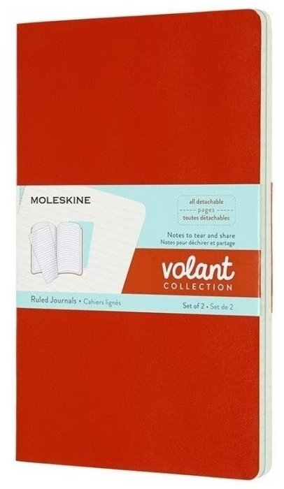 Блокнот Moleskine VOLANT QP711F16B24 Pocket, 90x140 мм, 80 страниц, линейка, мягкая обложка, оранжевый/голубой (2 штуки) информация: