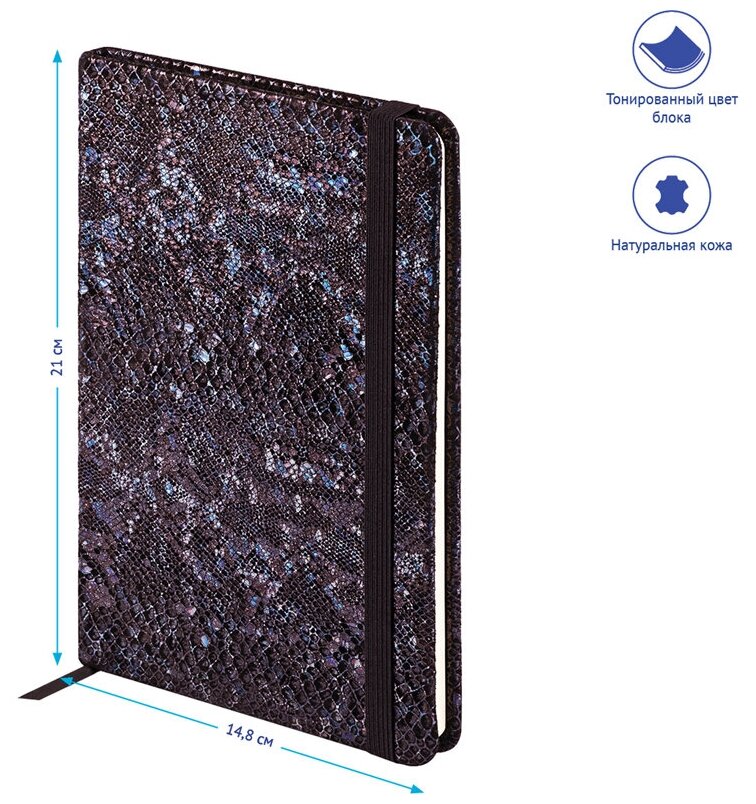 10 цен на Записная книжка А5 72л. кожа, Clairefontaine "Celestial leather. Lazer Black", 90г/м2, резинка, лясс