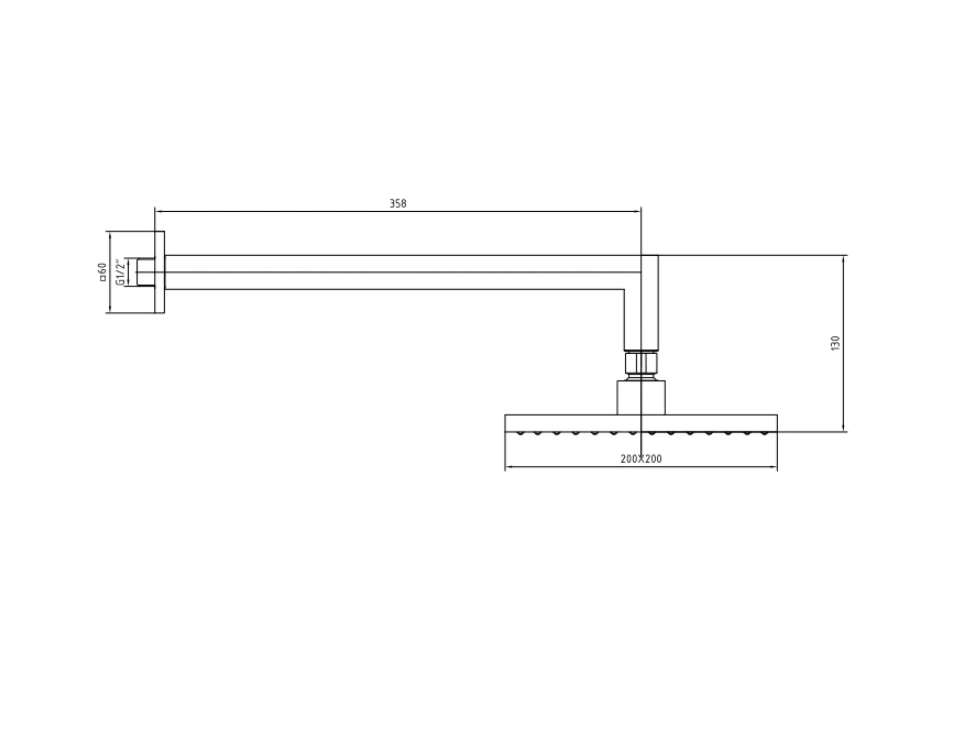 E.C.A 102145031C1EX TIERA квадратный верхний душ с держателем 200x200 мм матовый черный