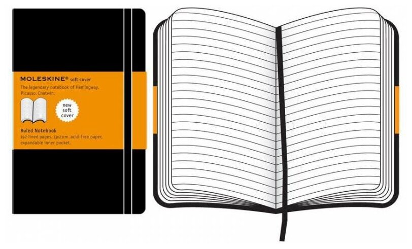Блокнот Moleskine Classic Soft, 192стр, в линейку, мягкая обложка, черный [qp616] информация: