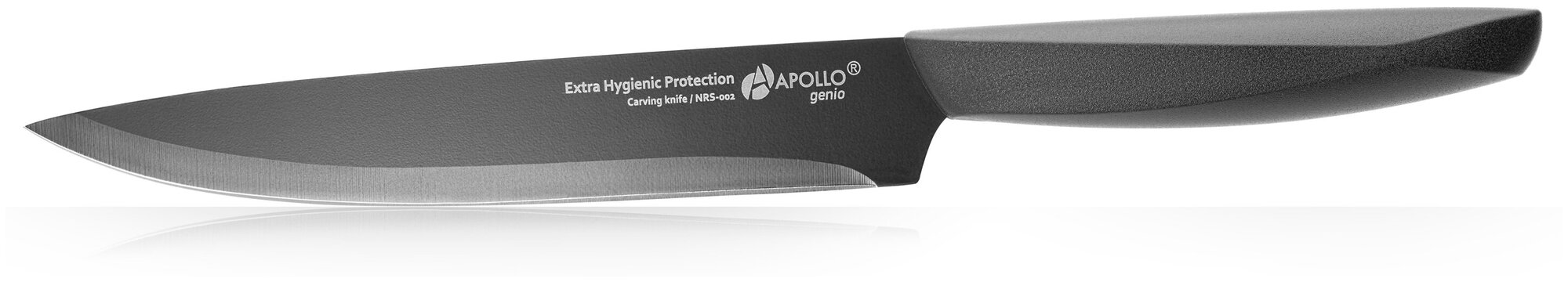| Дополнительная информация | Нож APOLLO Genio Nero Steel 18см для мяса нерж. сталь с антибакт. покр, пластик |