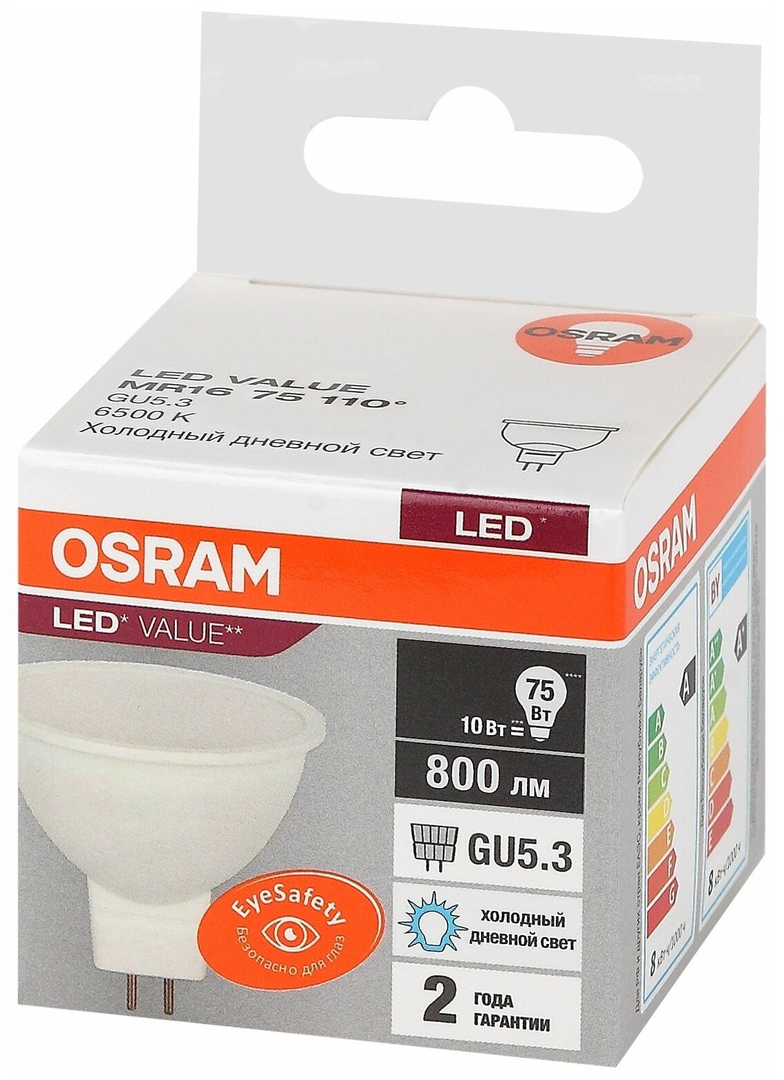 10 цен на Лампочка светодиодная MR 16 10W GU5.3 220-240V 865 холодный дневной свет OSRAM