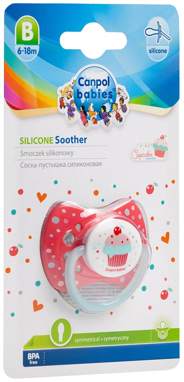 Пустышка симметричная силиконовая Canpol Babies Cupcake, 6-18 мес, розовый информация: