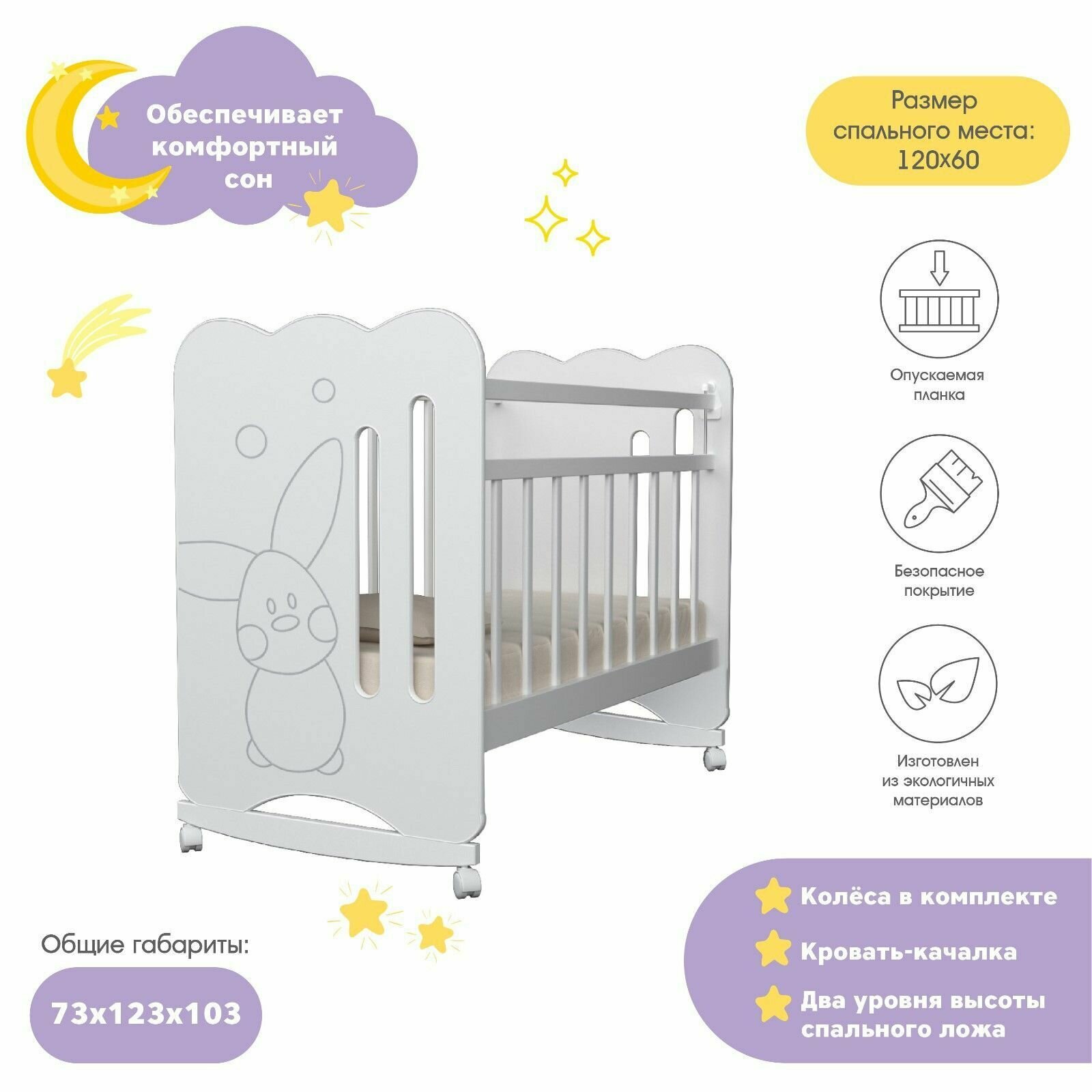 ВДК Кровать детская Sweet Rabbit колесо-качалка (белый) ( 1200х600) информация: