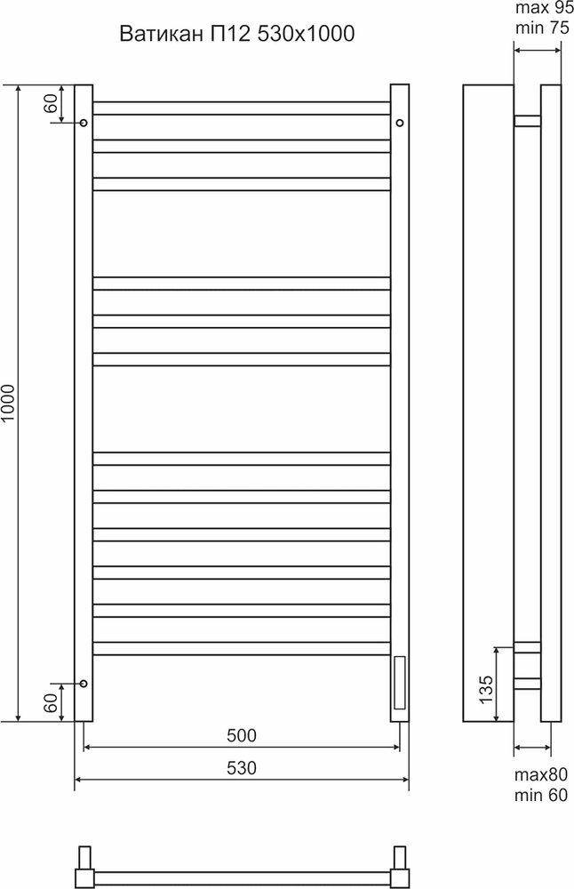 Полотенцесушитель электрический Terminus Ватикан П12 50x100, sensor quick touch информация: