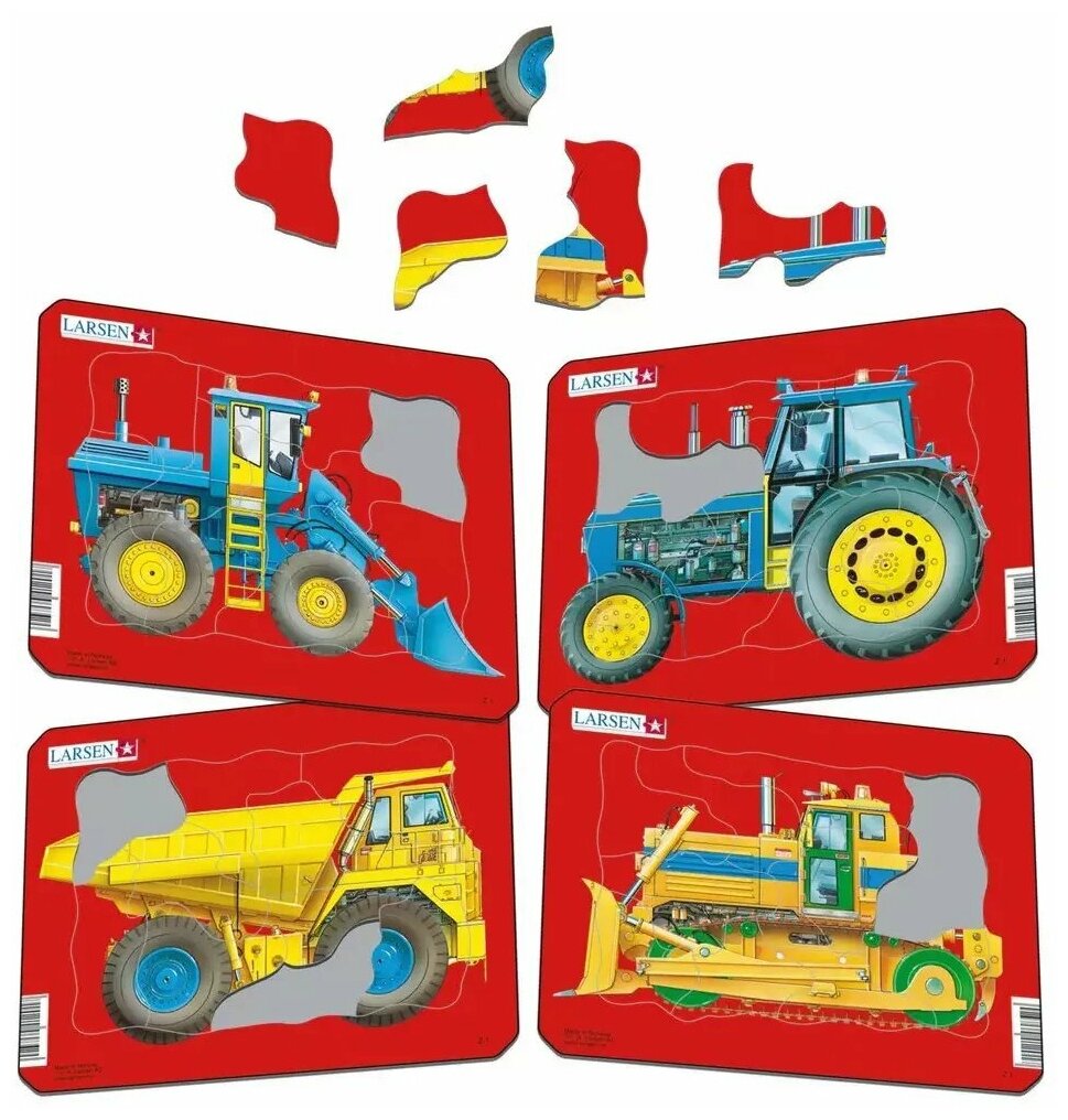 Набор пазлов для детей Larsen "Трактор и самосвал" (набор, 4 шт.), 10 элементов