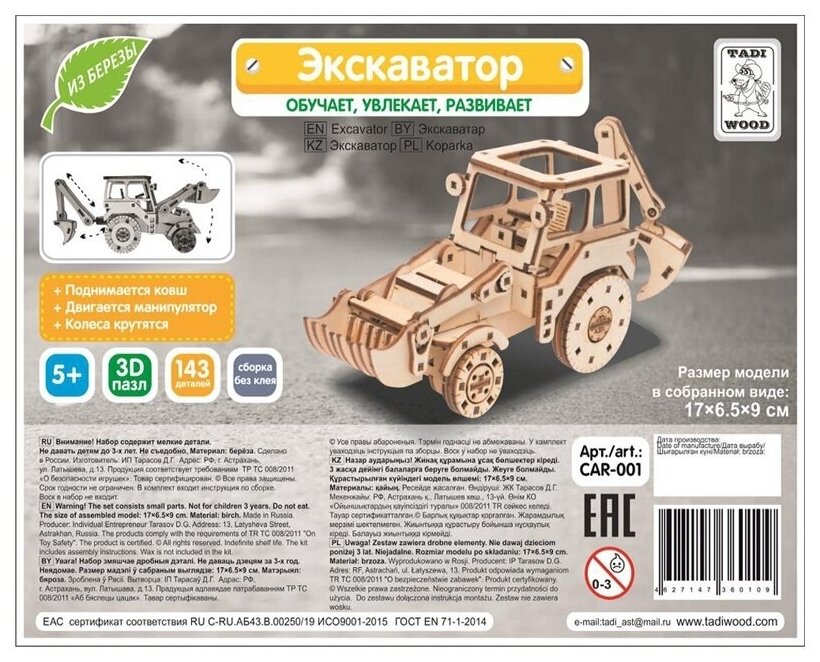 Конструктор деревянный Tadiwood "Экскаватор" (CAR-001) информация: