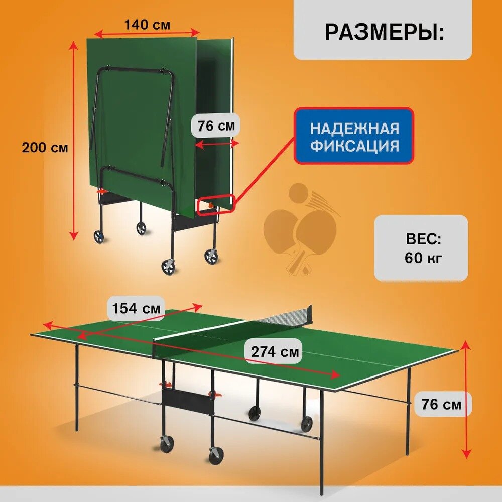 Теннисный стол складной стандарт Green с сеткой информация: