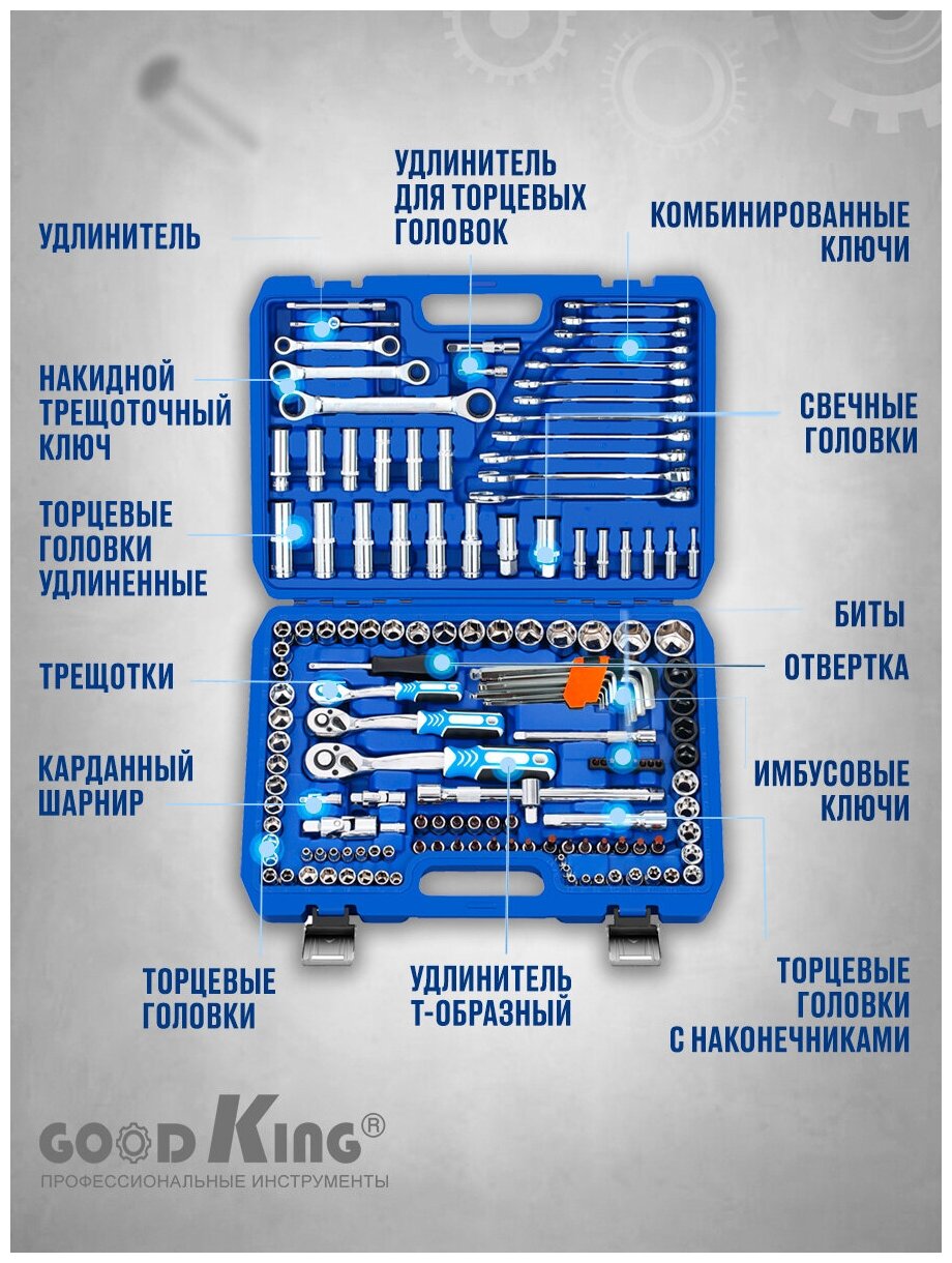 Набор инструментов 150 предметов 1/4" 3/8" 1/2" трещотка 72 зуба GOODKING B-10150 Набор инструментов для автомобиля информация:
