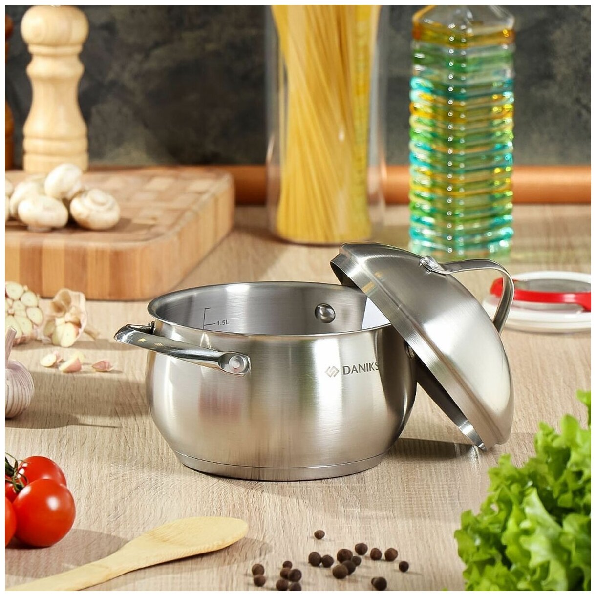 Кастрюля нержавеющая сталь, 1.6 л, с крыш, Daniks