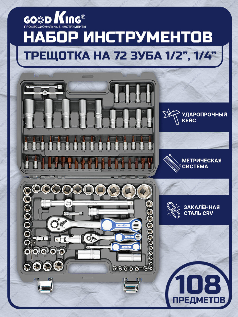 Набор инструментов для авто GOODKING 108 предметов, 1/4 1/2, трещотка 72 зуба B-10108