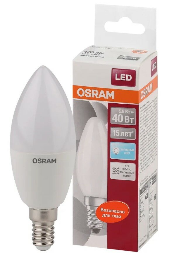 Отзывы на Лампочка светодиодная OSRAM Свеча B E14 5Вт 220В 470Лм 4000К Дневной белый, упаковка 10шт