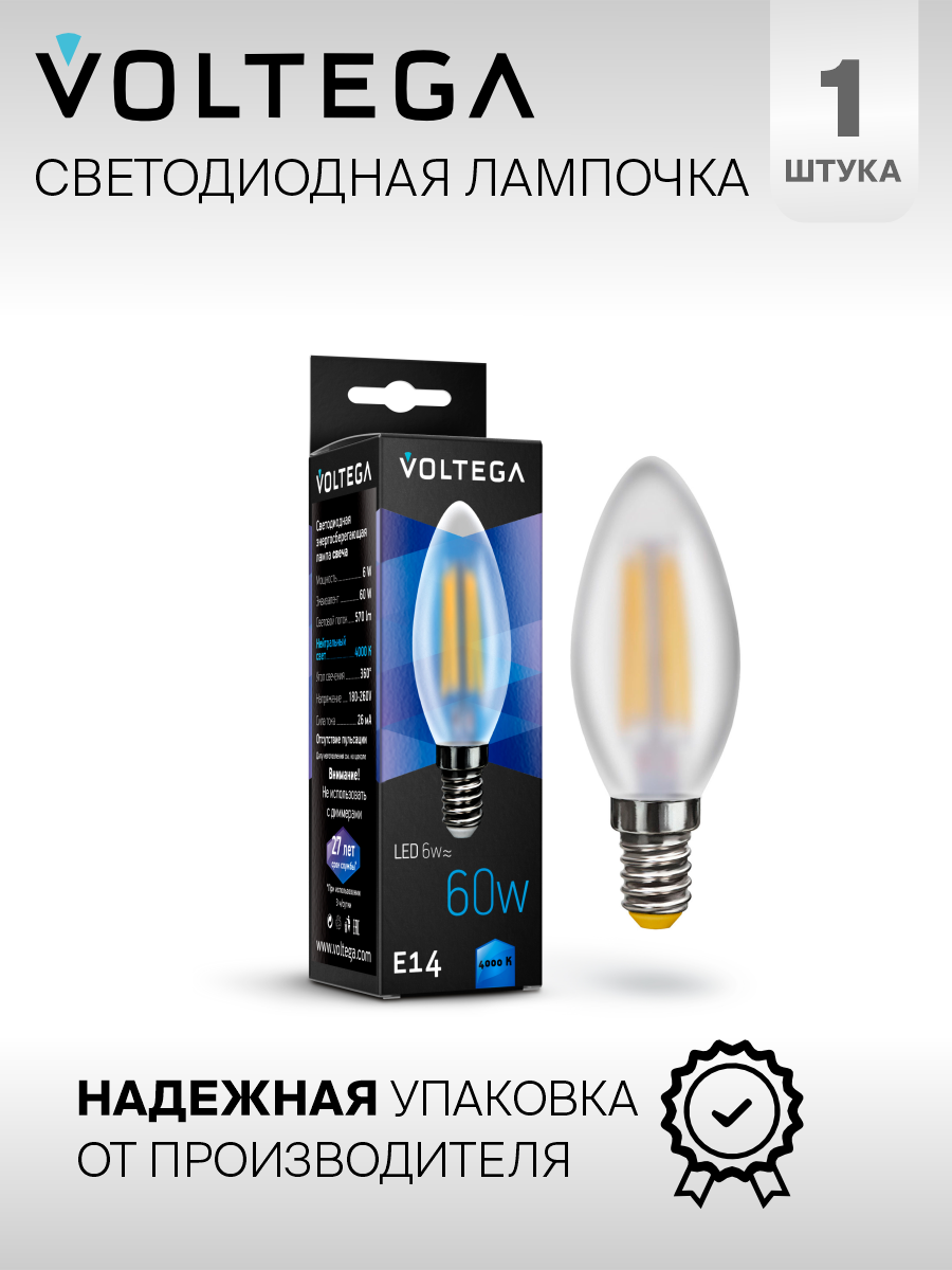 Лампочка Voltega Crystal Candle matt, 7045, 6W, 4000K E14, DIM, 1 шт.