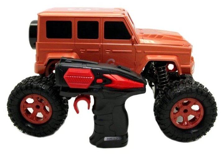 Отзывы на Радиоуправляемая машинка внедорожник на высокой подвеске, масштаб 1:14, качественный пластик и детализация, амортизаторы, управление от Пульта ДУ (в комплекте), дальность около 20 метров, питание от батареек тип "АА" (4шт -машинка, 2 шт -ПДУ)
